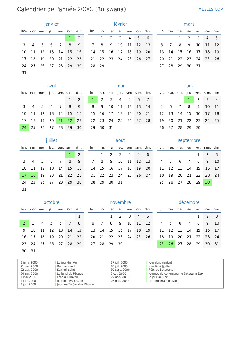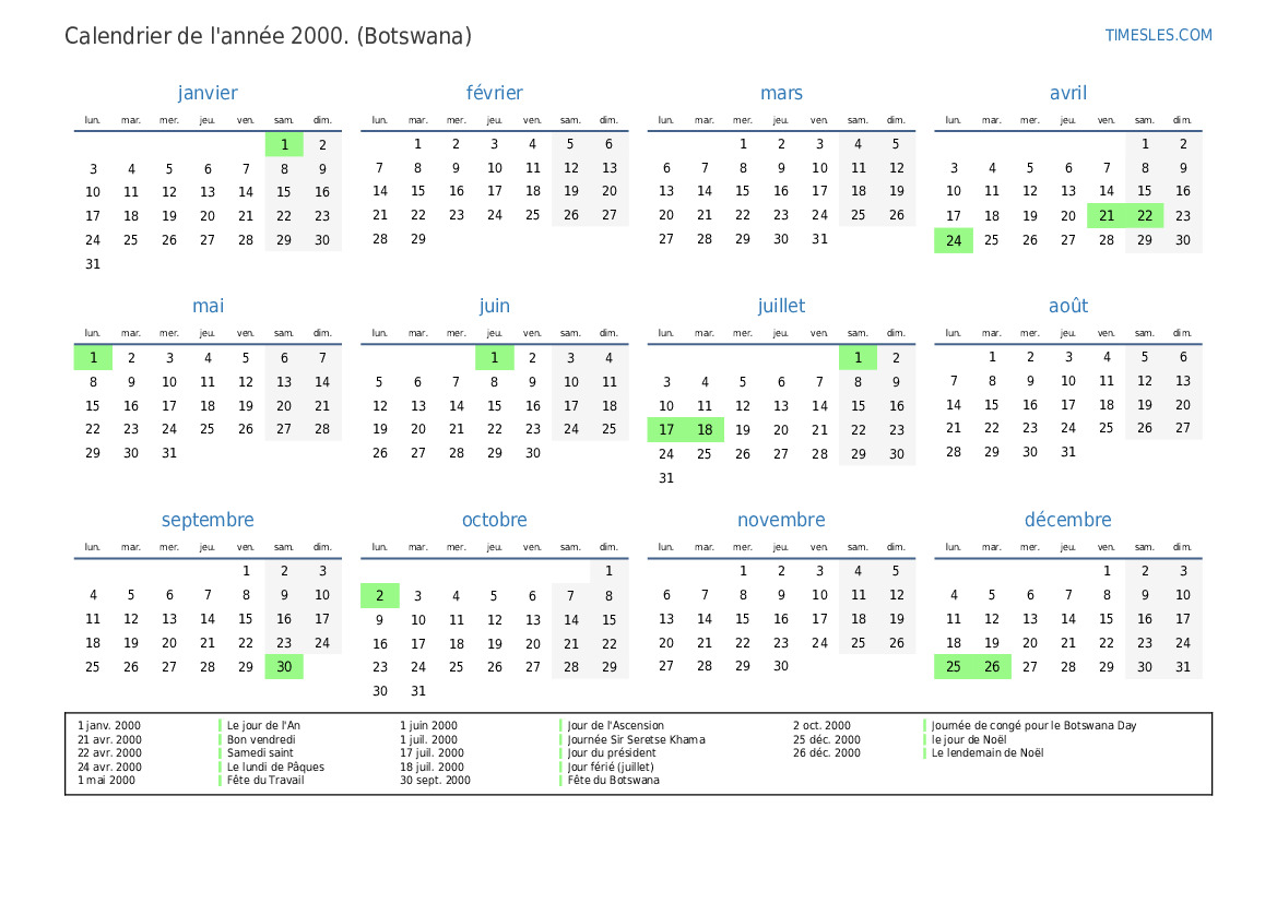 2 oct. 2000 Journée de congé pour le Botswana Day