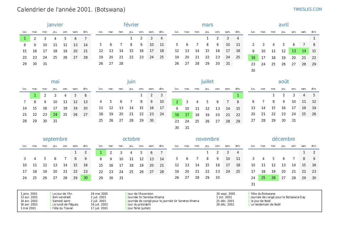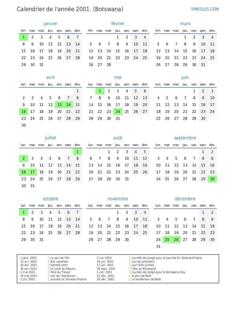 2 juil. 2001 Journée de congé pour la journée Sir Seretse Khama