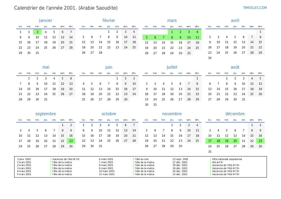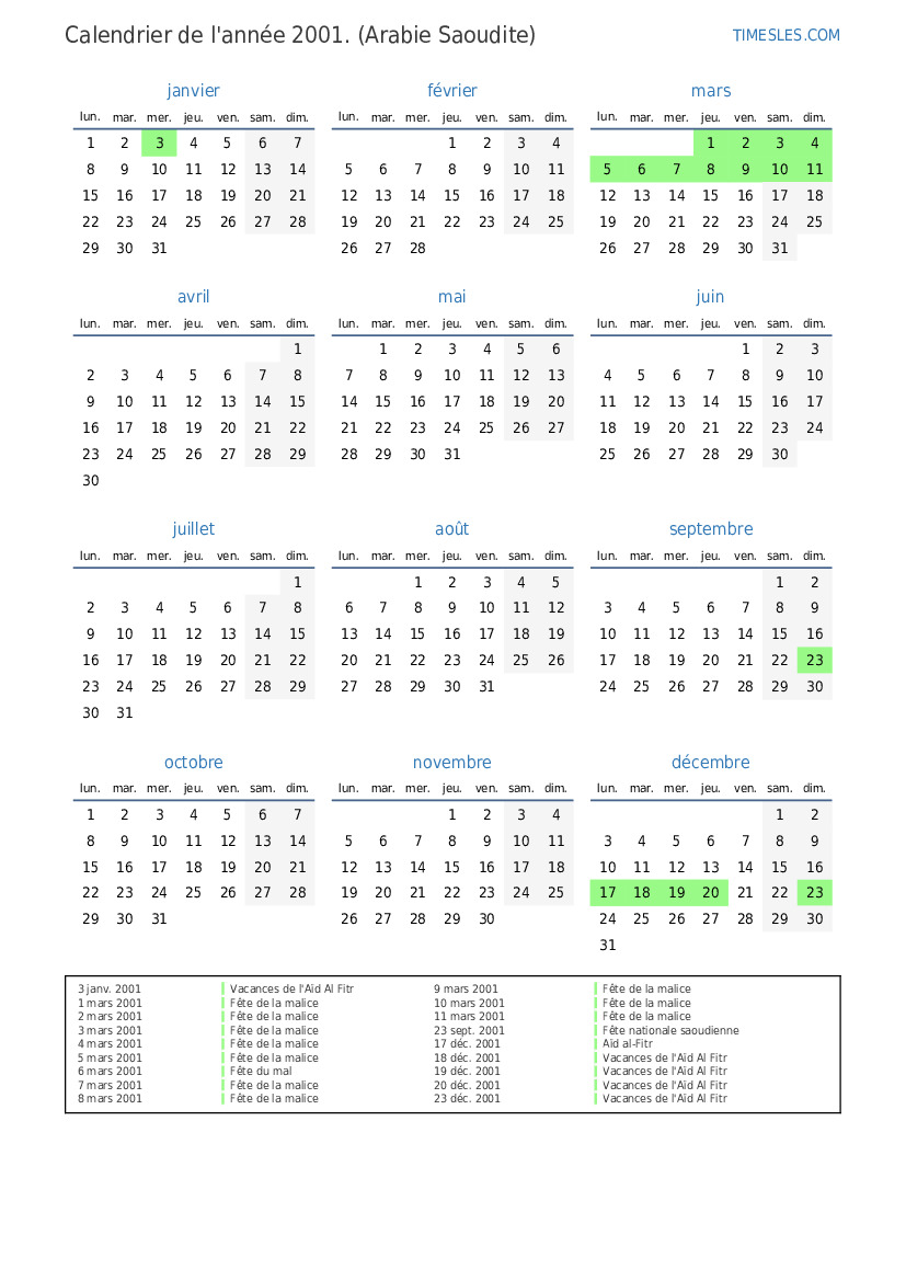 3 janv. 2001 Vacances de l'Aïd Al Fitr