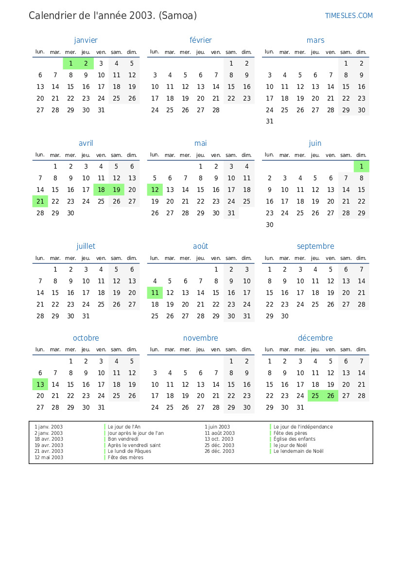 2 janv. 2003 Jour après le jour de l'an