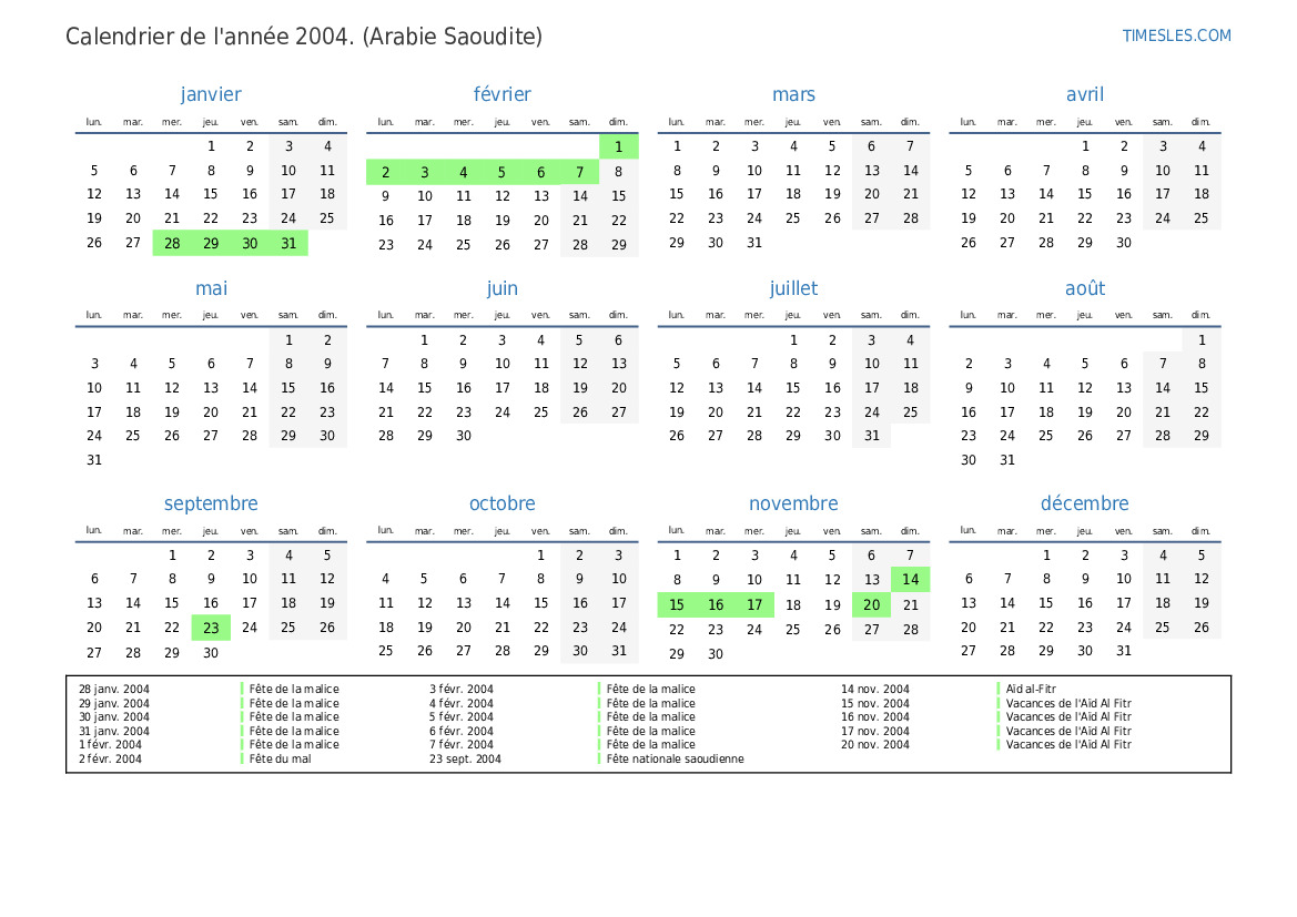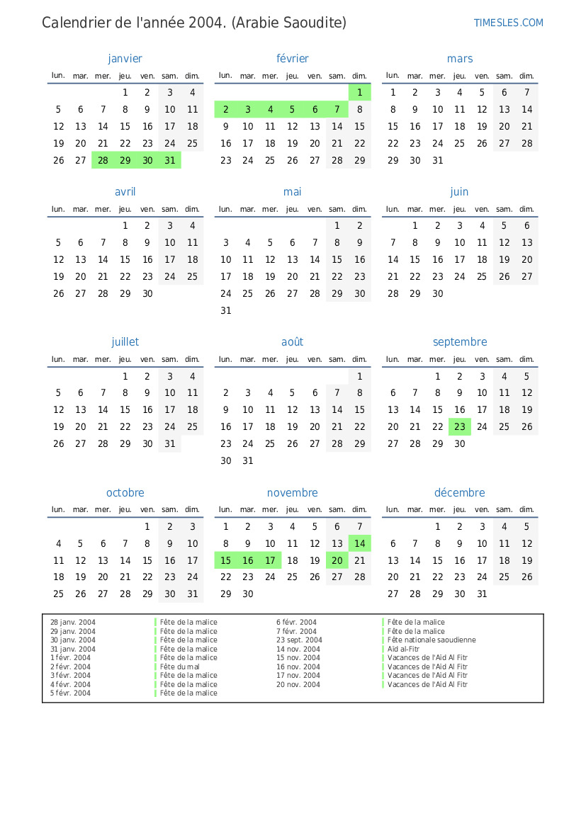 20 nov. 2004 Vacances de l'Aïd Al Fitr