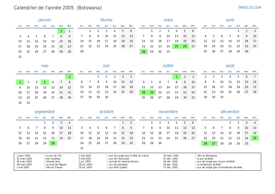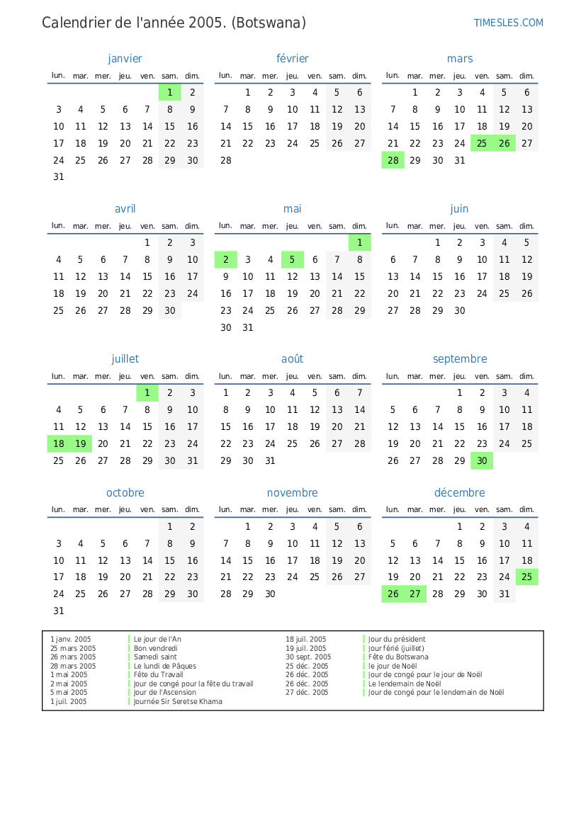 26 déc. 2005 Jour de congé pour le jour de Noël