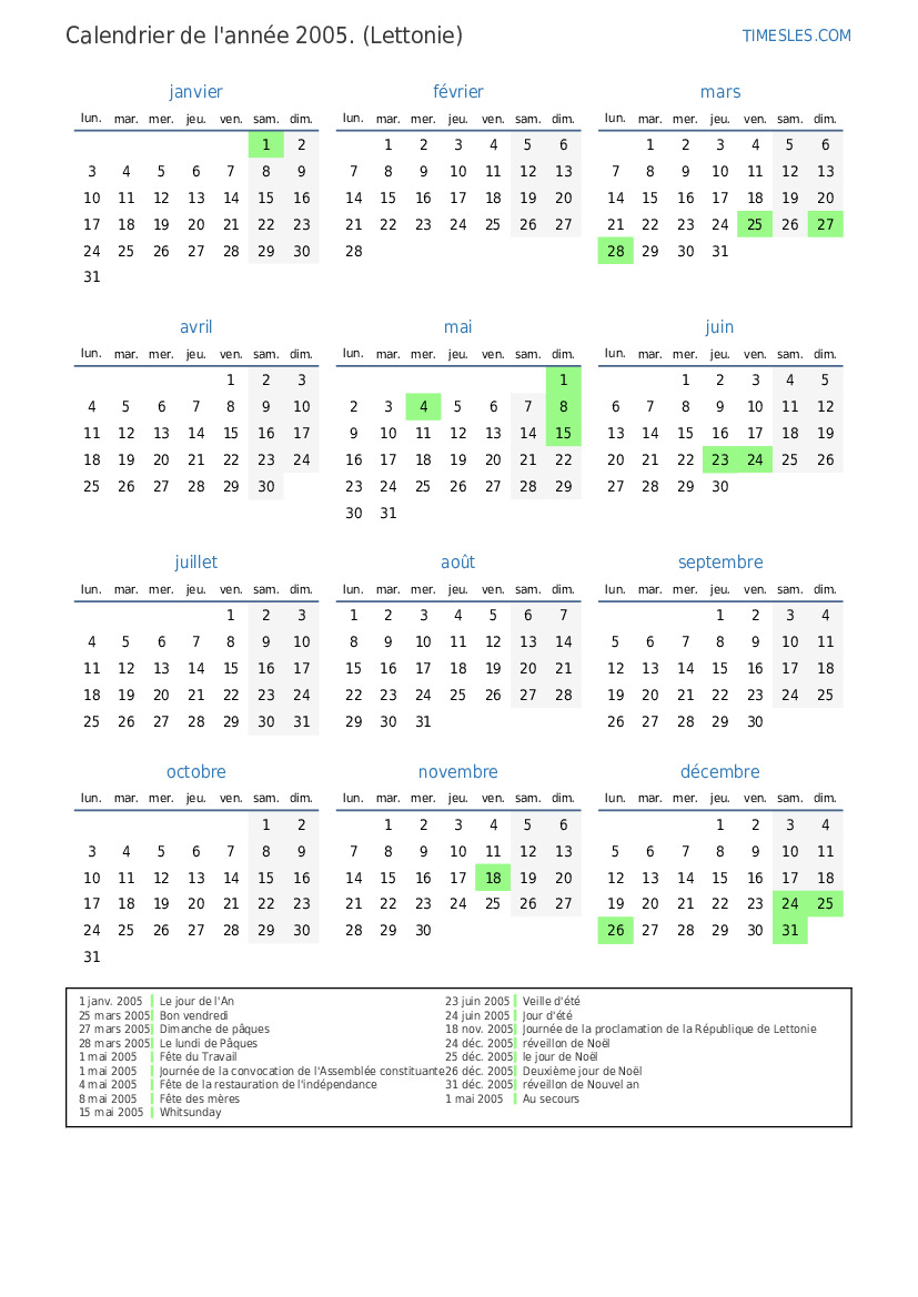 18 nov. 2005 Journée de la proclamation de la République de Lettonie