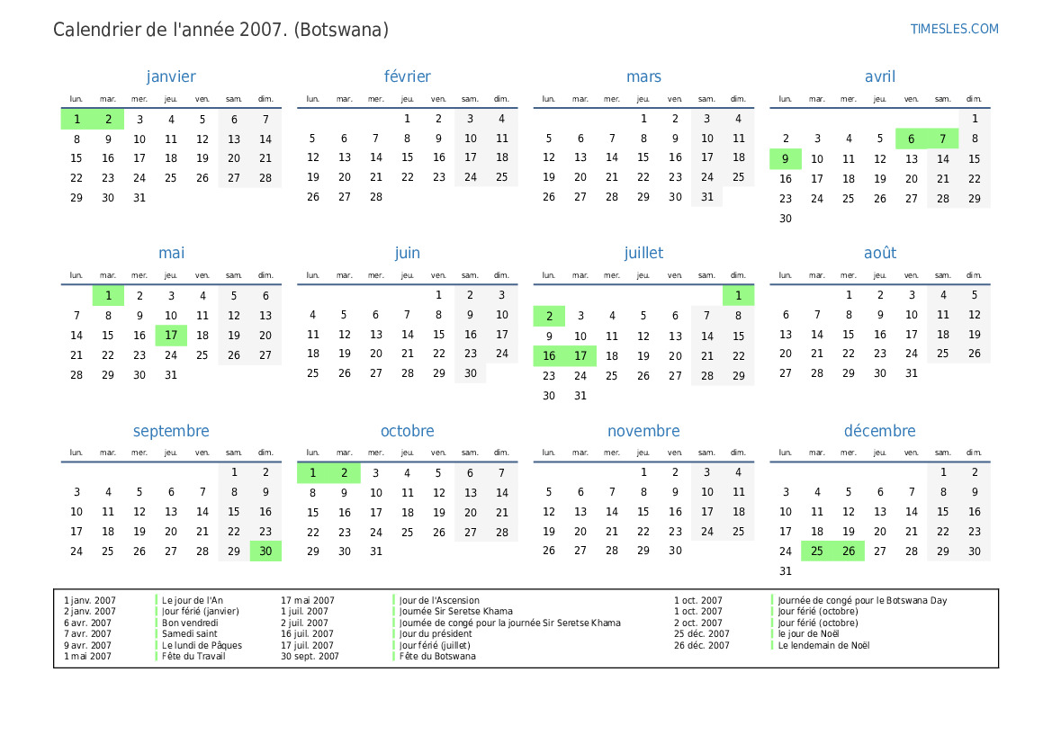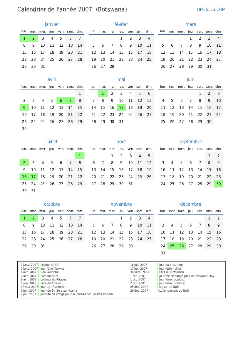 2 juil. 2007 Journée de congé pour la journée Sir Seretse Khama