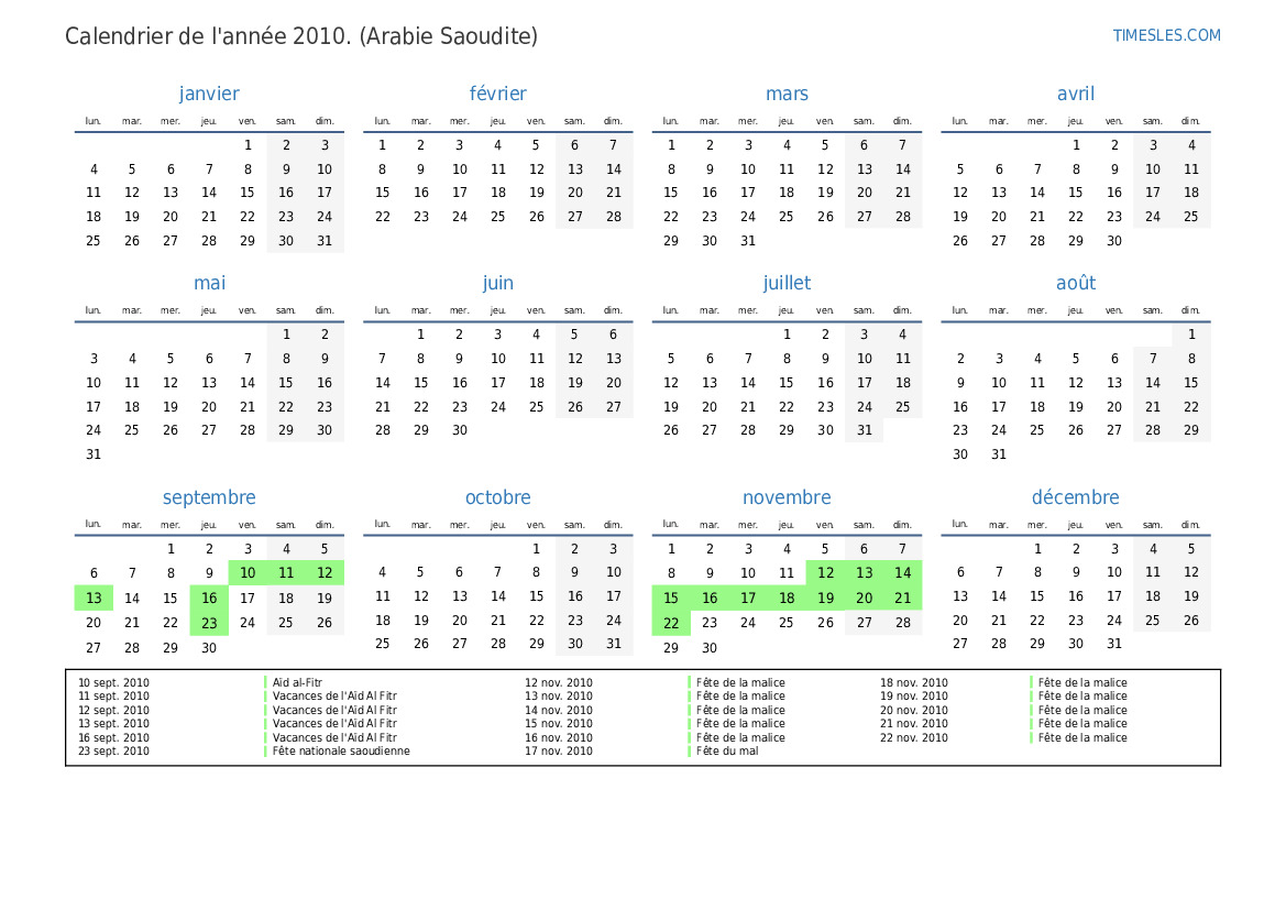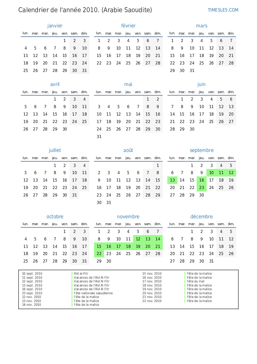 13 sept. 2010 Vacances de l'Aïd Al Fitr