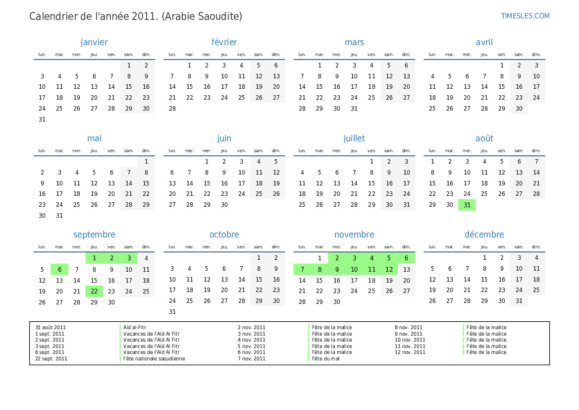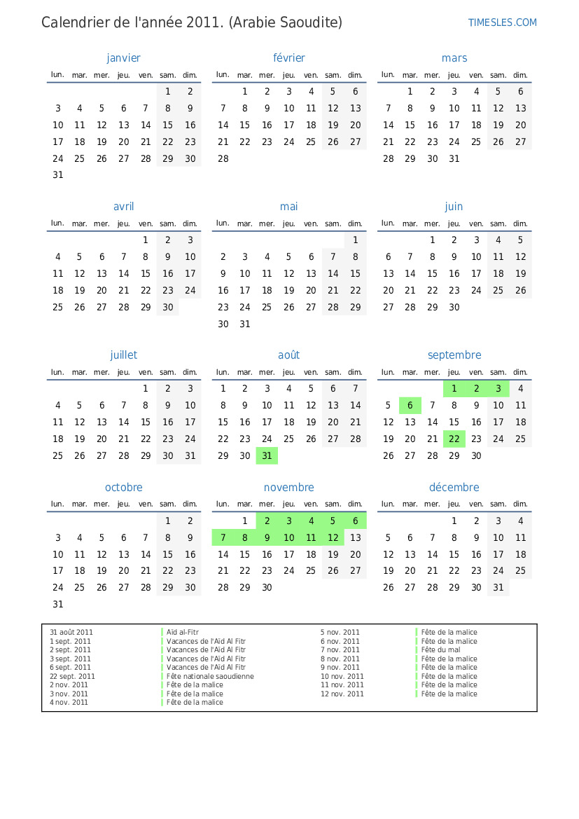 1 sept. 2011 Vacances de l'Aïd Al Fitr
