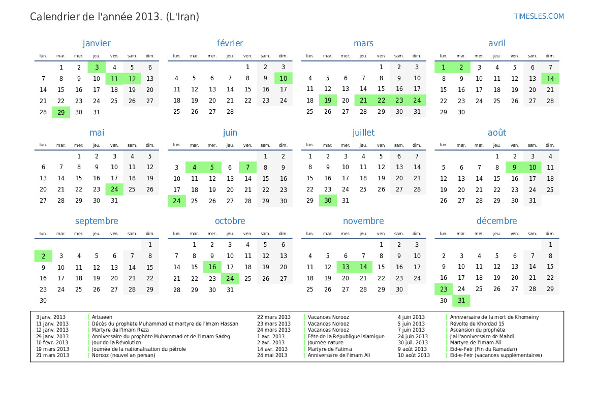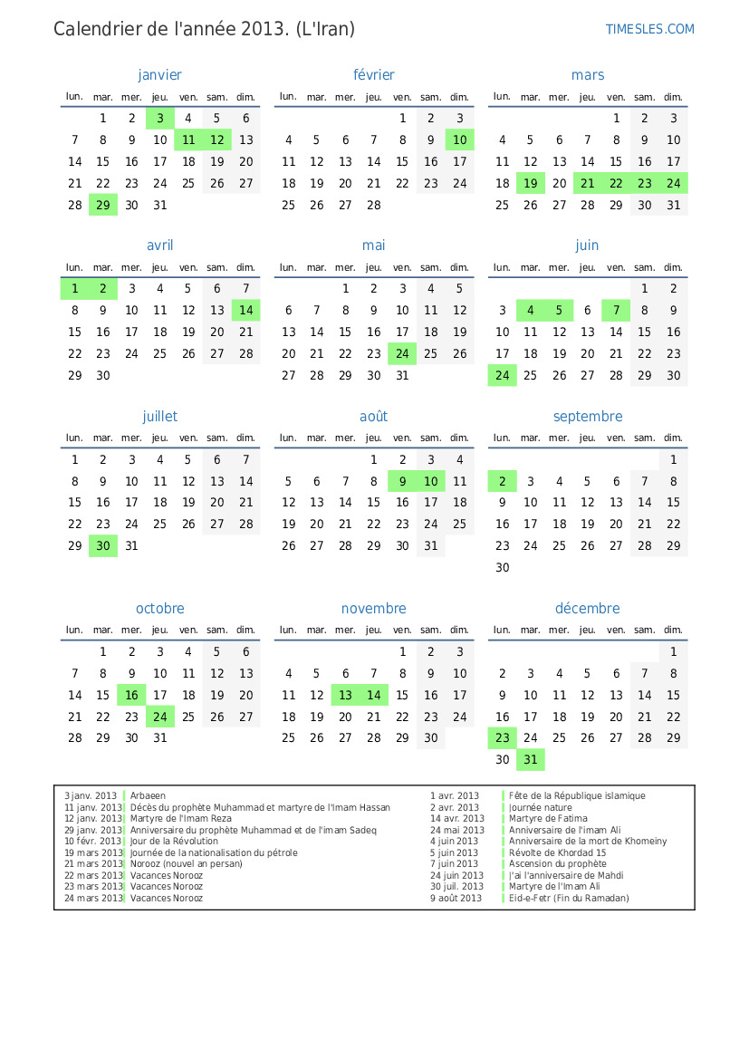 10 août 2013 Eid-e-Fetr (vacances supplémentaires)