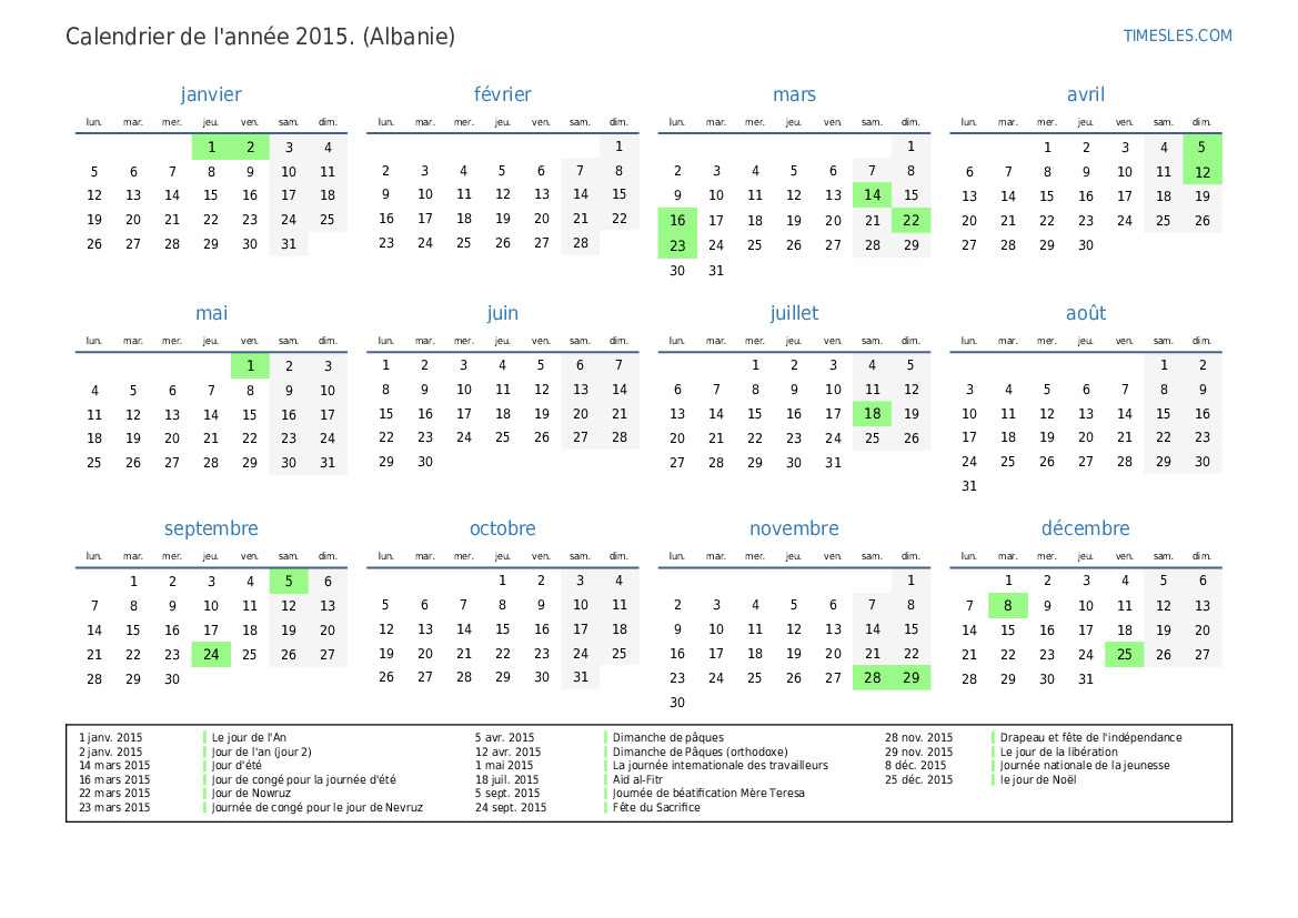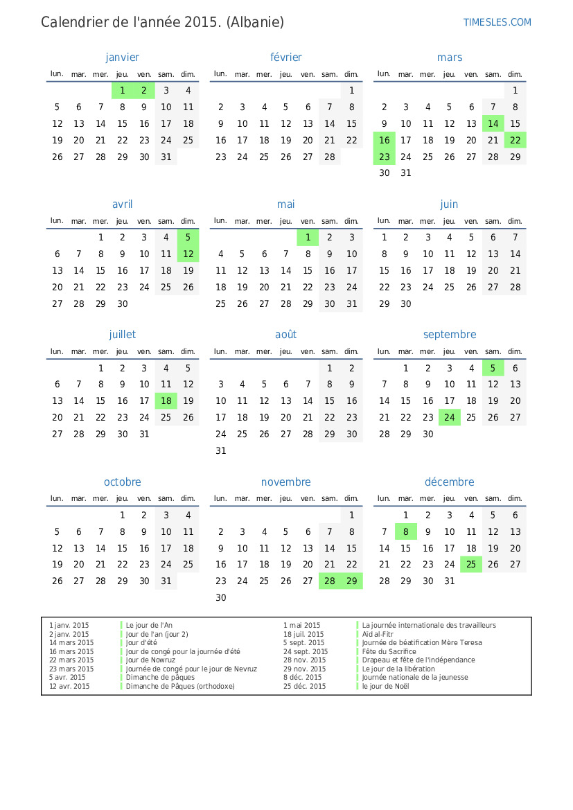 23 mars 2015 Journée de congé pour le jour de Nevruz