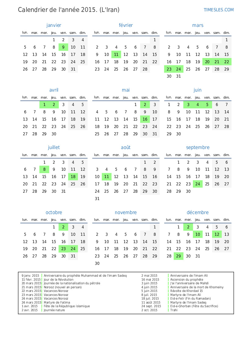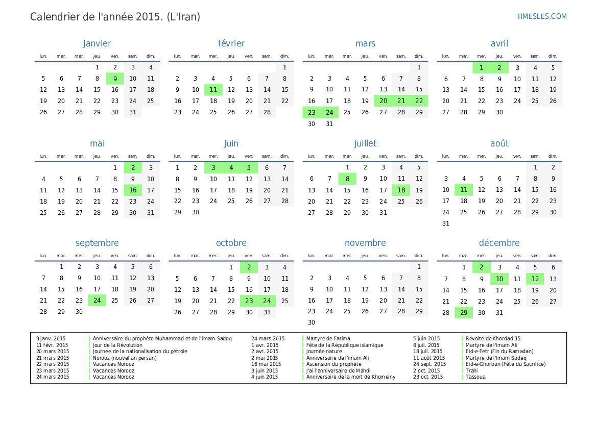 18 juil. 2015 Eid-e-Fetr (Fin du Ramadan)