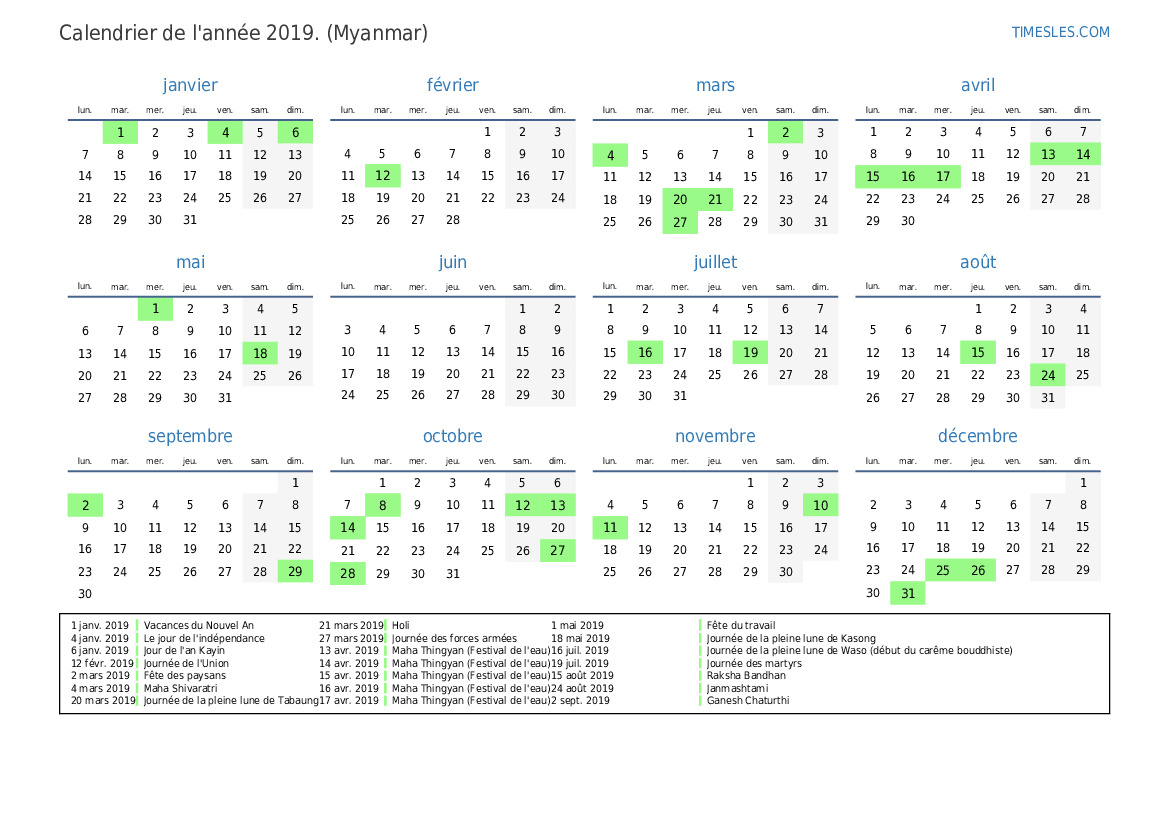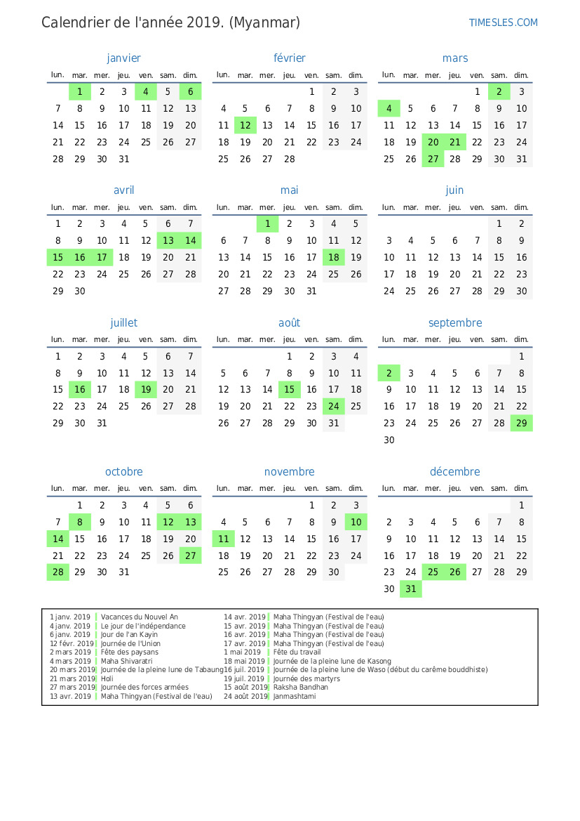 13 oct. 2019 Journée de la pleine lune de Thadingyut (fin du carême bouddhiste)