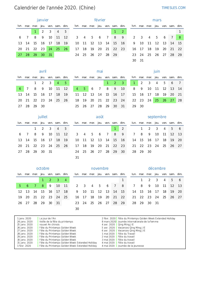 2 févr. 2020 Fête du Printemps Golden Week Extended Holiday