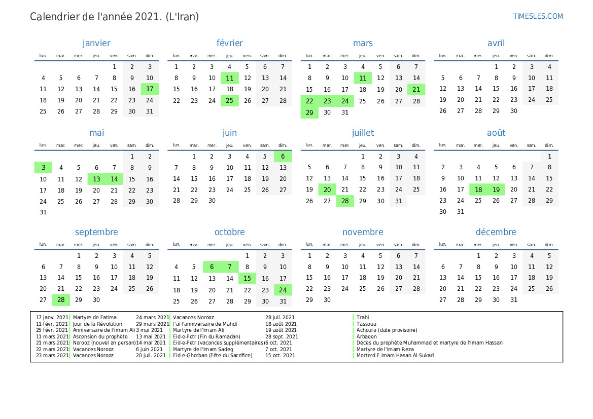 14 mai 2021 Eid-e-Fetr (vacances supplémentaires)