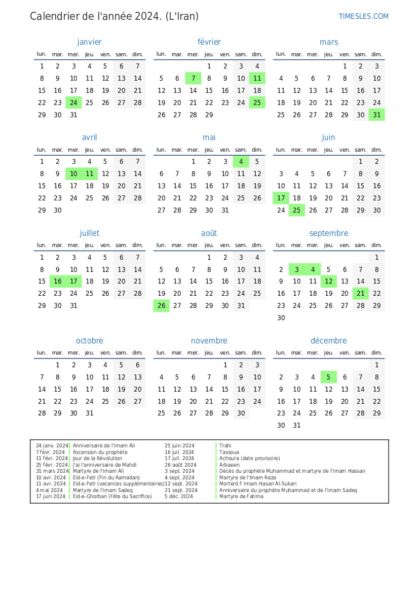 11 avr. 2024 Eid-e-Fetr (vacances supplémentaires)