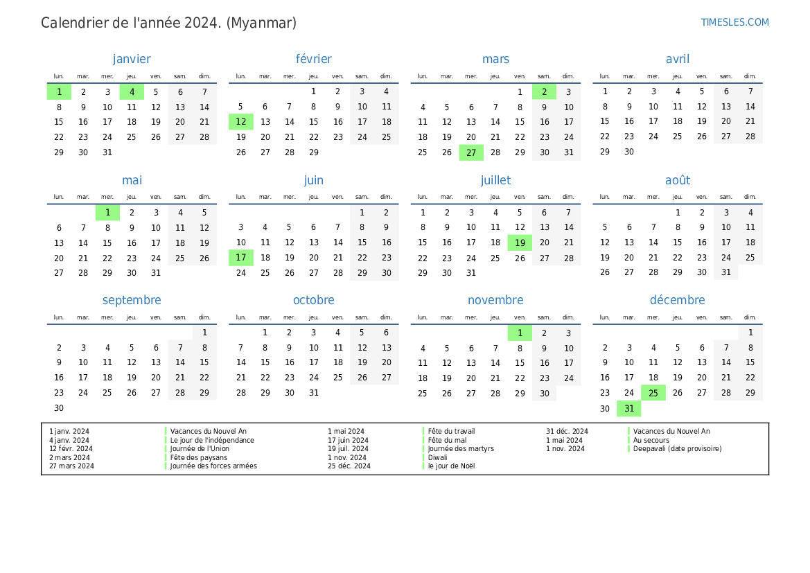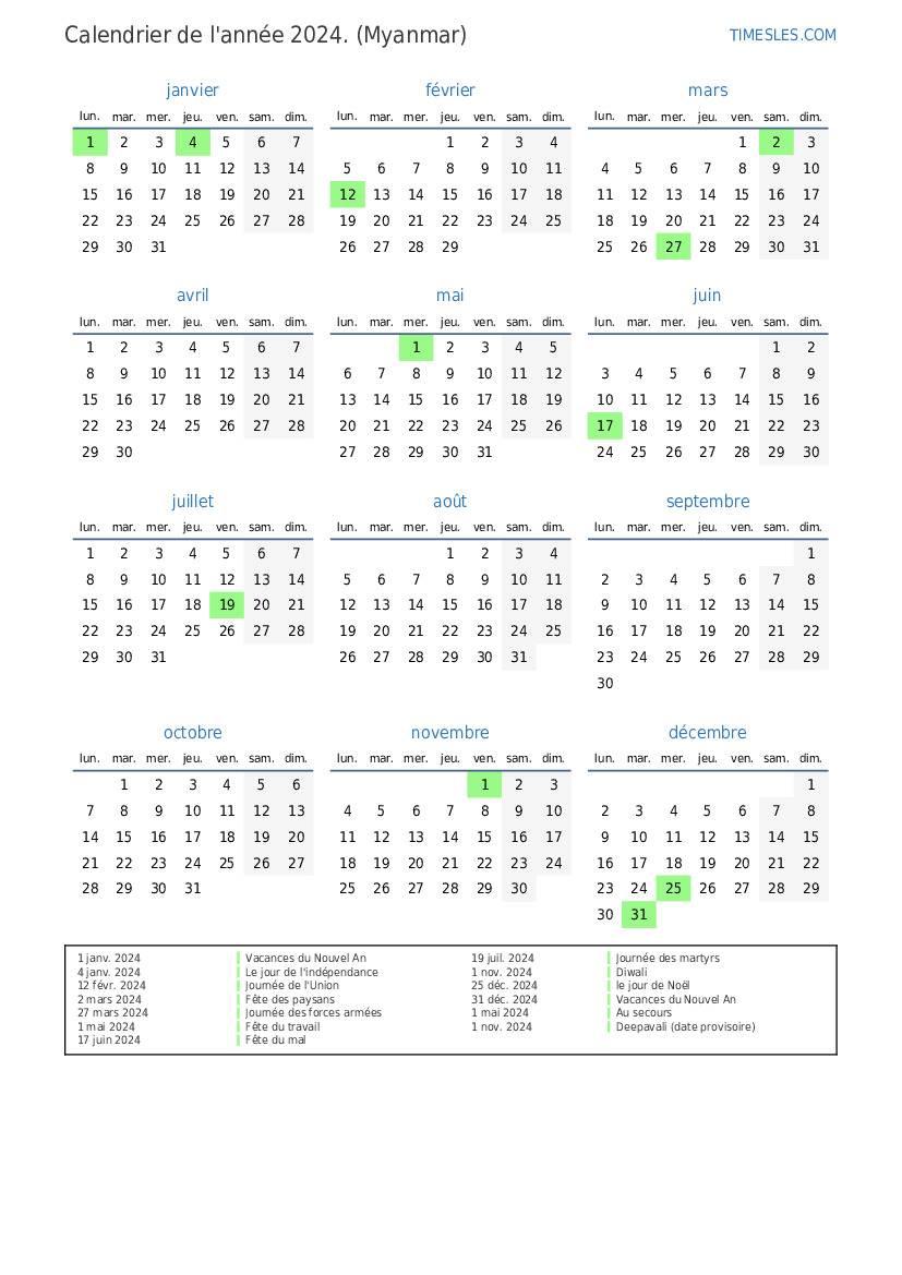 1 janv. 2024 Vacances du Nouvel An