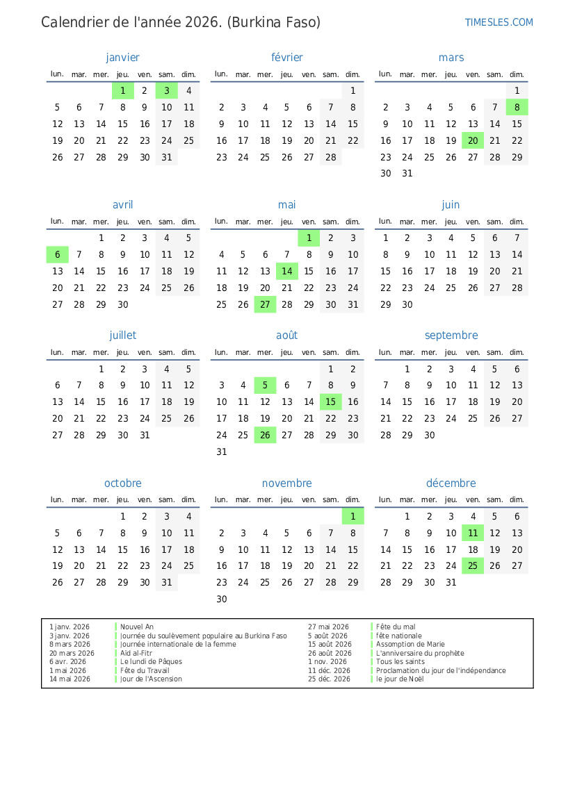 11 déc. 2026 Proclamation du jour de l'indépendance
