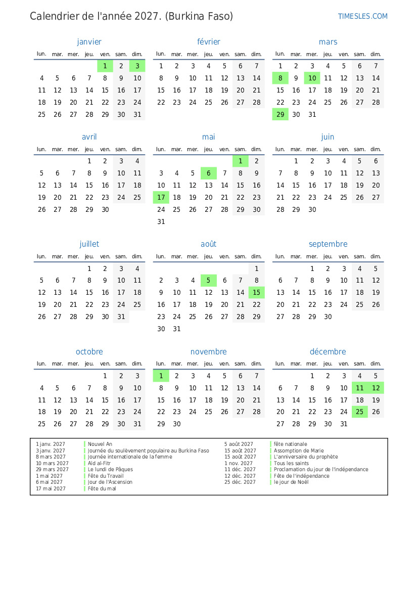 12 déc. 2027 Fête de l'indépendance