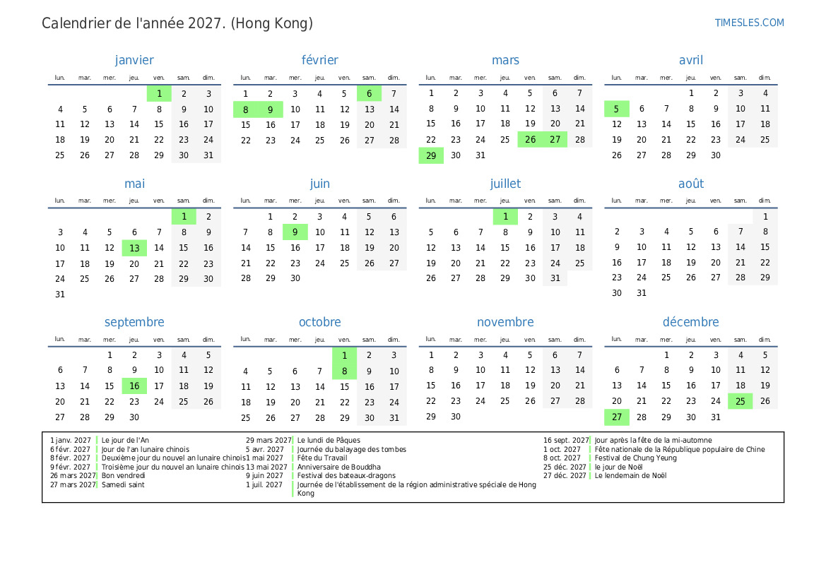 1 janv. 2027 Le jour de l'An
