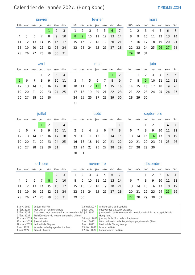 1 juil. 2027 Journée de l'établissement de la région administrative spéciale de Hong Kong