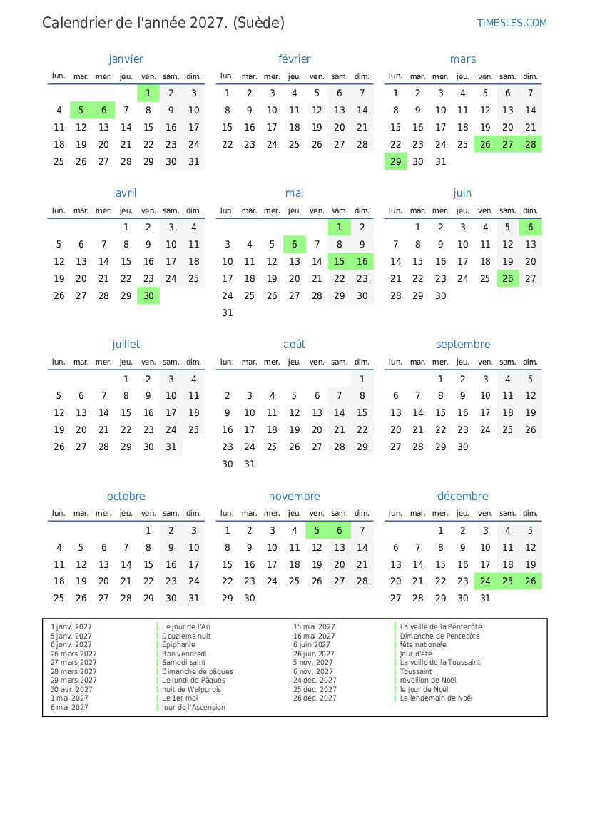 1 janv. 2027 Le jour de l'An