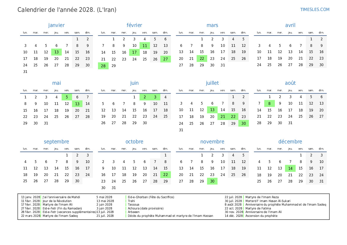 27 févr. 2028 Eid-e-Fetr (Fin du Ramadan)