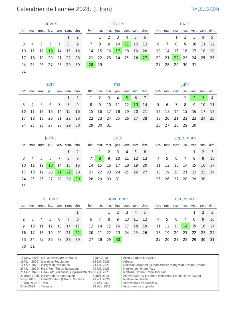 28 févr. 2028 Eid-e-Fetr (vacances supplémentaires)