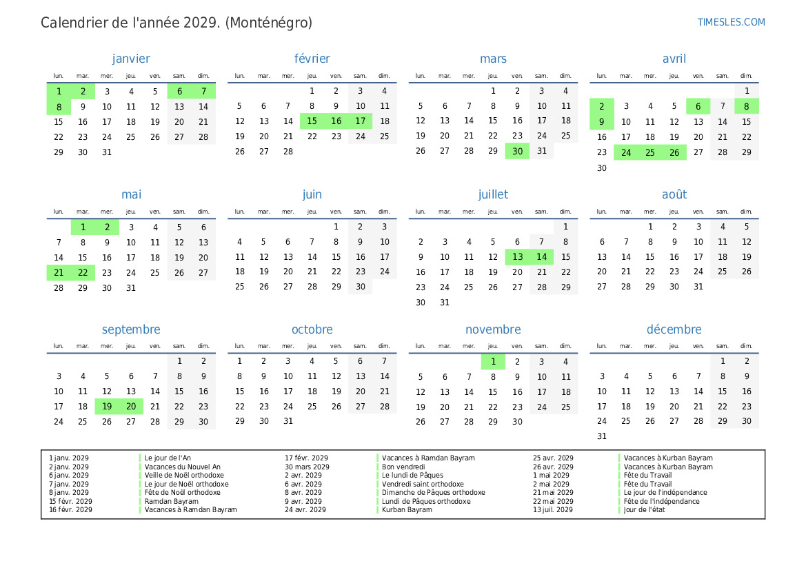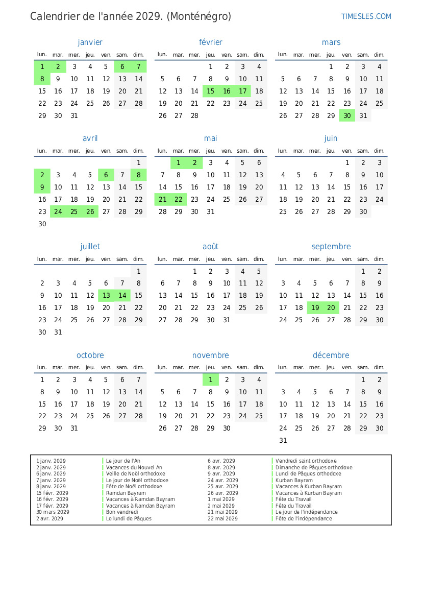 2 janv. 2029 Vacances du Nouvel An