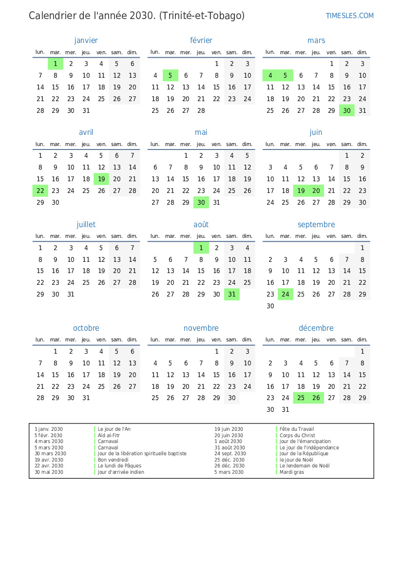 22 avr. 2030 Le lundi de Pâques