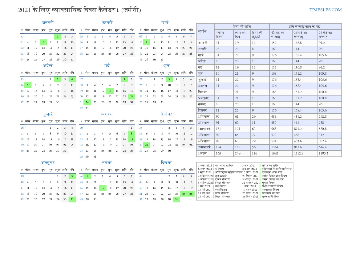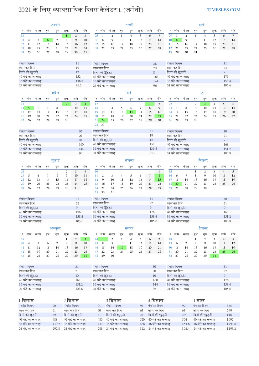 जर्मनी के लिए 3 चौथाई कैलेंडर 2021