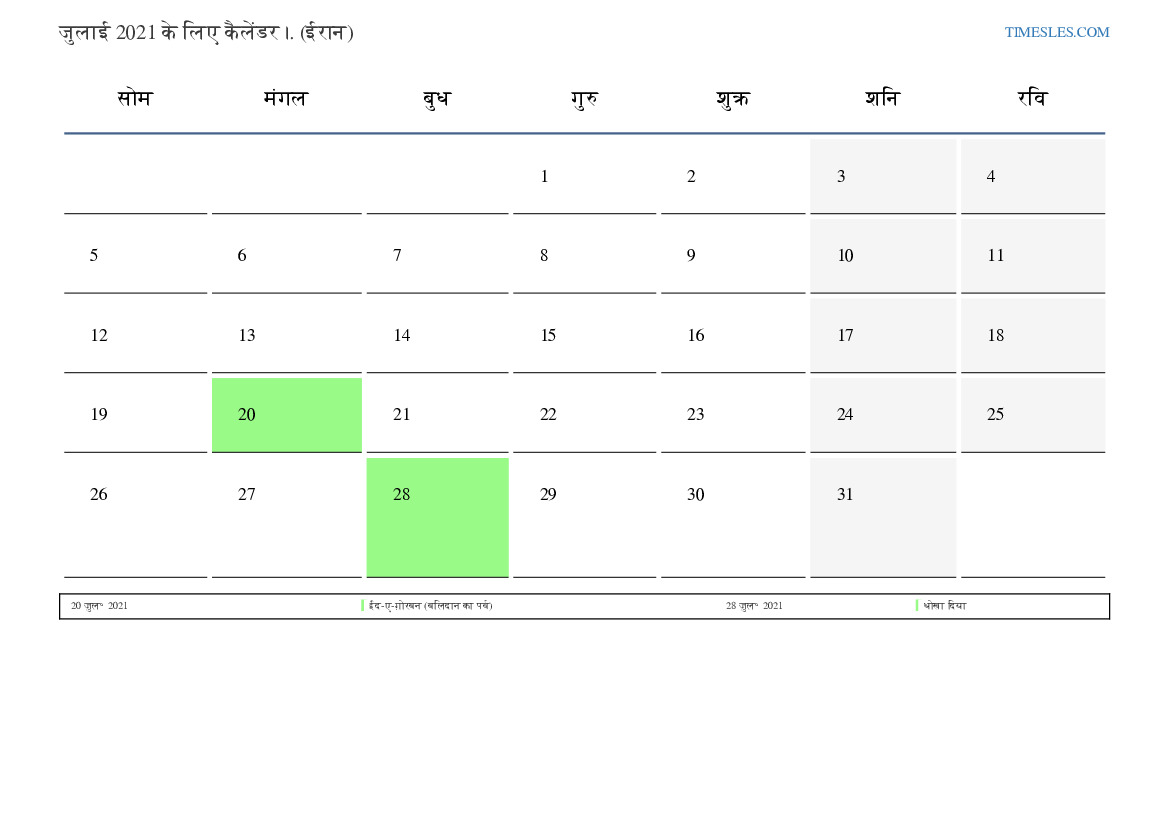 ईरान के लिए जुलाई 2021 के छुट्टियों और सप्ताहांत के साथ पीडीएफ कैलेंडर डाउनलोड और प्रिंट करें