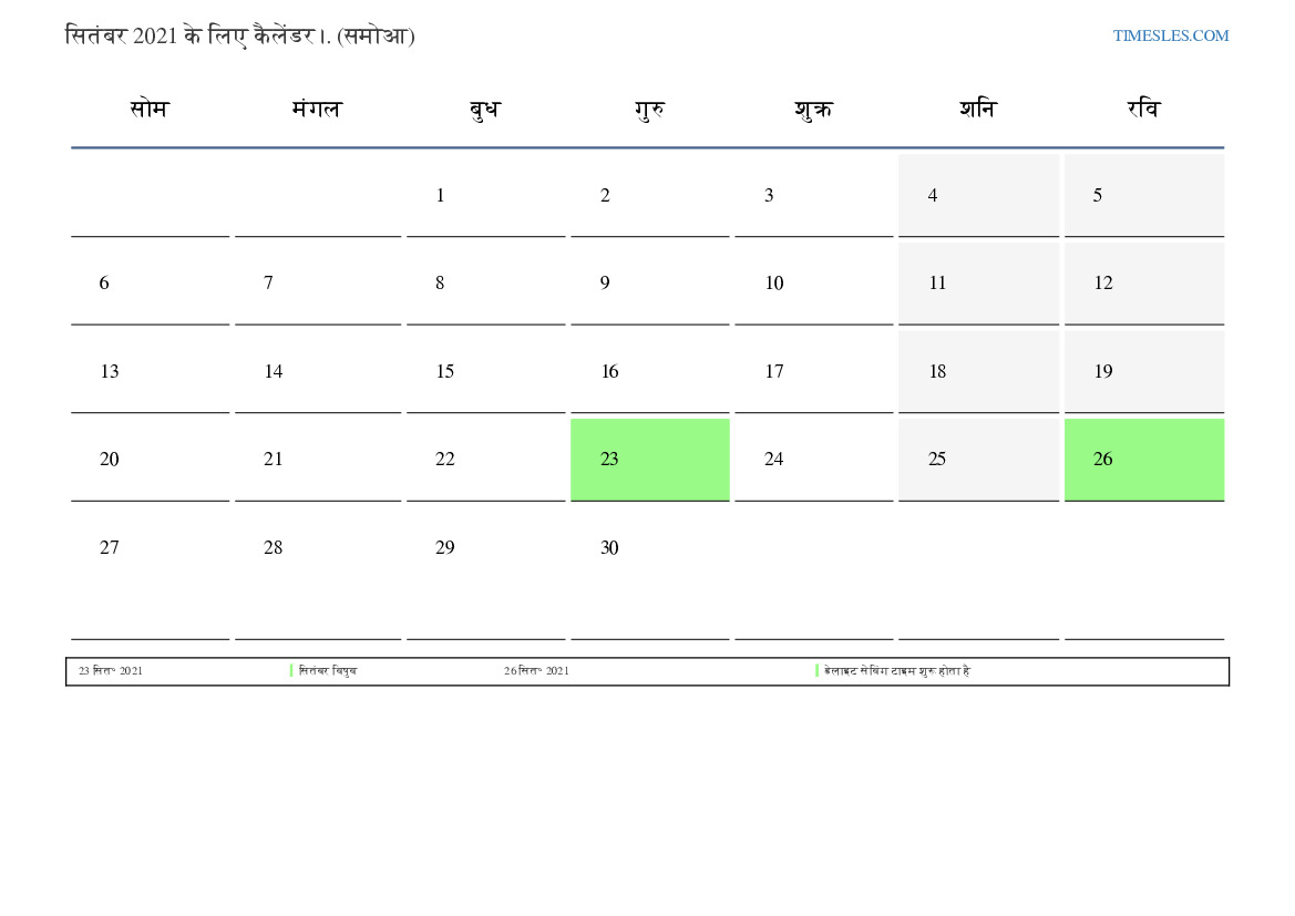 समोआ के लिए सितंबर 2021 के लिए छुट्टियों और सप्ताहांत कैलेंडर