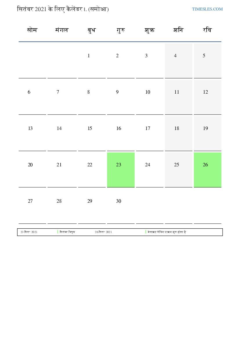सितंबर के महीने में 30 दिन होते हैं। यह 2021 का 9 महीना है। वर्ष का मौसम: पतझड़। सितंबर का महीना बुधवार को शुरू होता है और गुरुवार को समाप्त होता है। सितंबर 2021 के महीने में, समोआ में 2 छुट्टियां और दिन बंद।
