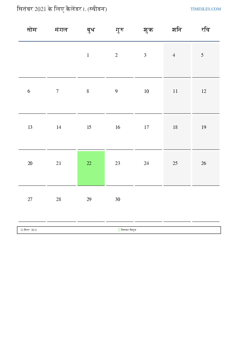 स्वीडन के लिए सितंबर 2021 के लिए छुट्टियों और सप्ताहांत कैलेंडर