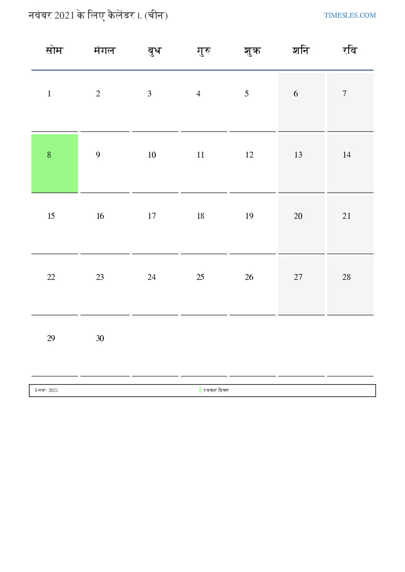 चीन के लिए नवंबर 2021 के लिए छुट्टियों और सप्ताहांत कैलेंडर