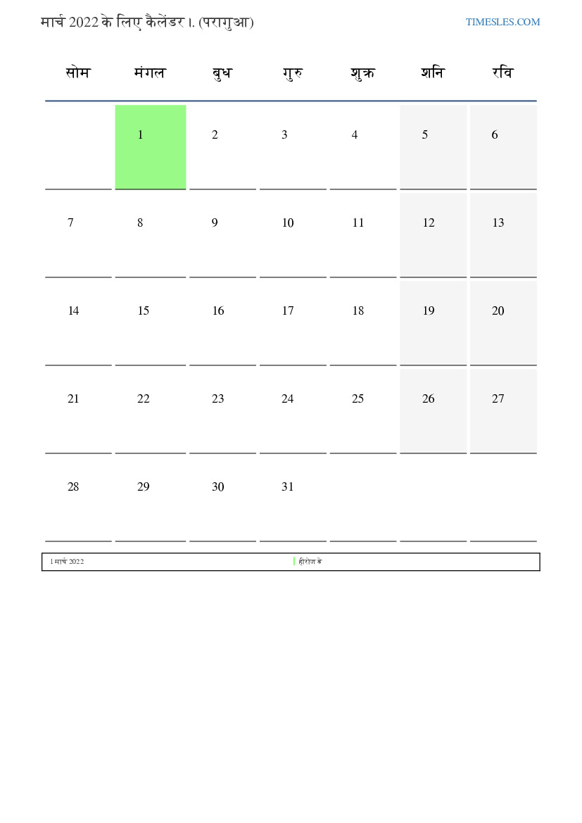 पराग्वे के लिए मार्च 2022 के लिए छुट्टियों और सप्ताहांत कैलेंडर