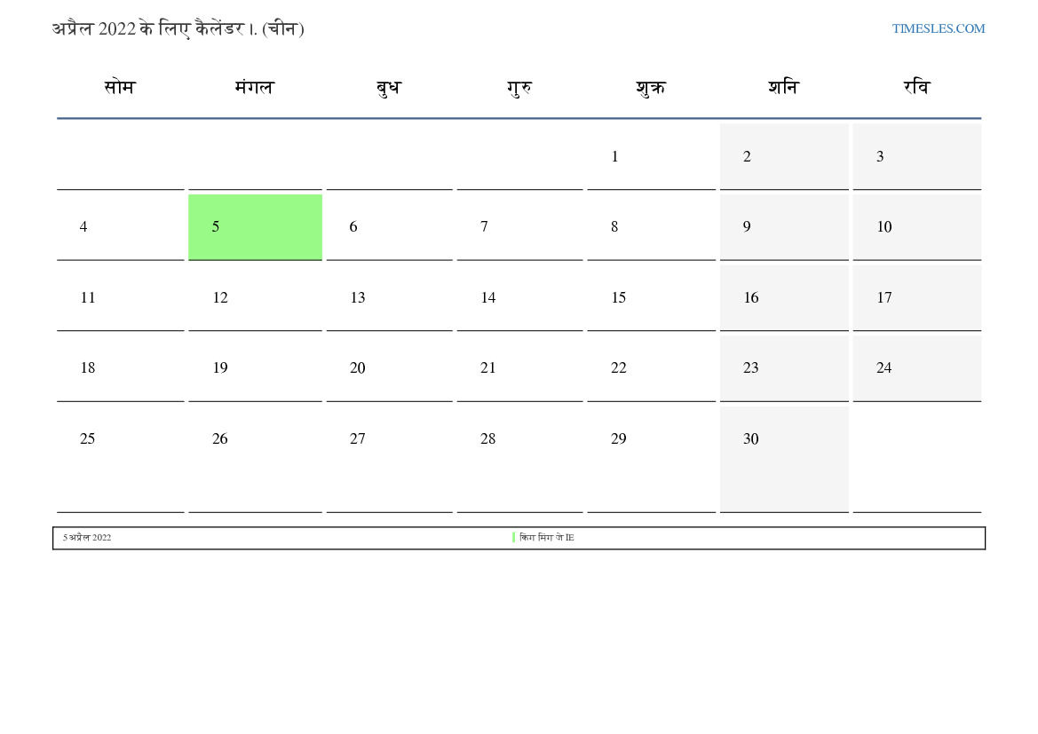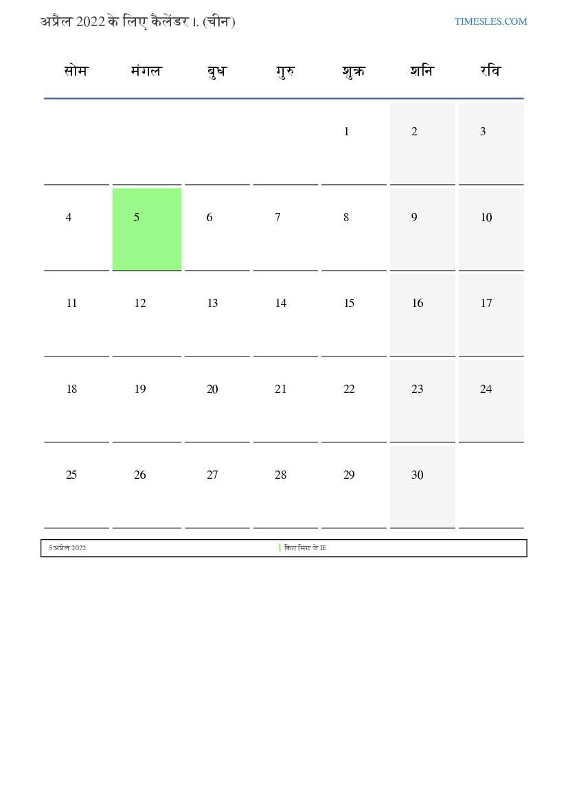 चीन के लिए अप्रैल 2022 के लिए छुट्टियों और सप्ताहांत कैलेंडर