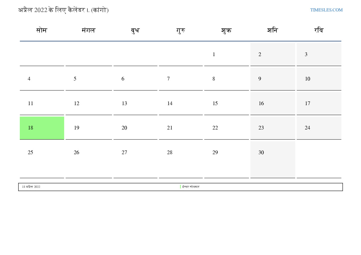 कांगो के लिए अप्रैल 2022 के लिए छुट्टियों और सप्ताहांत कैलेंडर