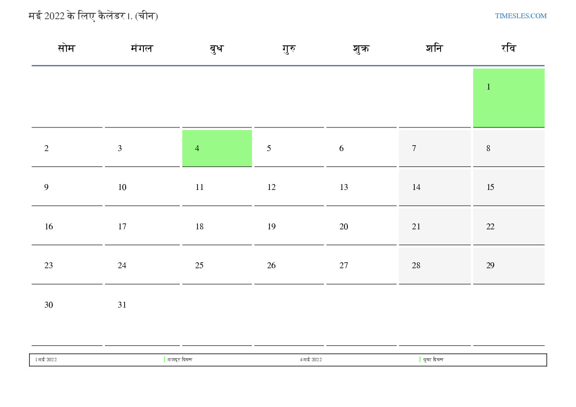 चीन के लिए मई 2022 के लिए छुट्टियों और सप्ताहांत कैलेंडर