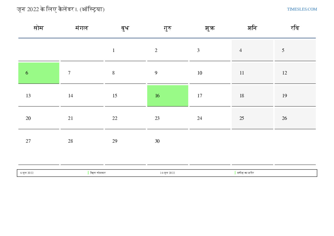 ऑस्ट्रिया के लिए जून 2022 के लिए छुट्टियों और सप्ताहांत कैलेंडर
