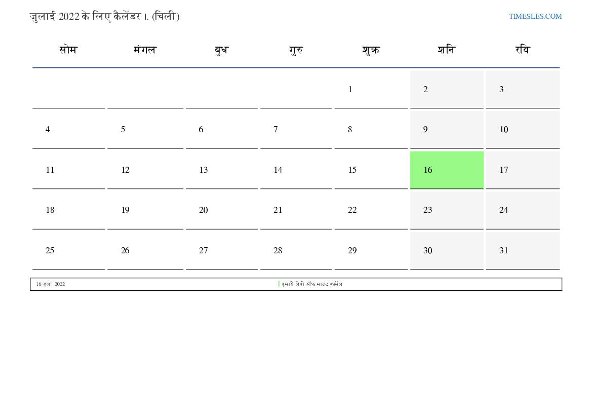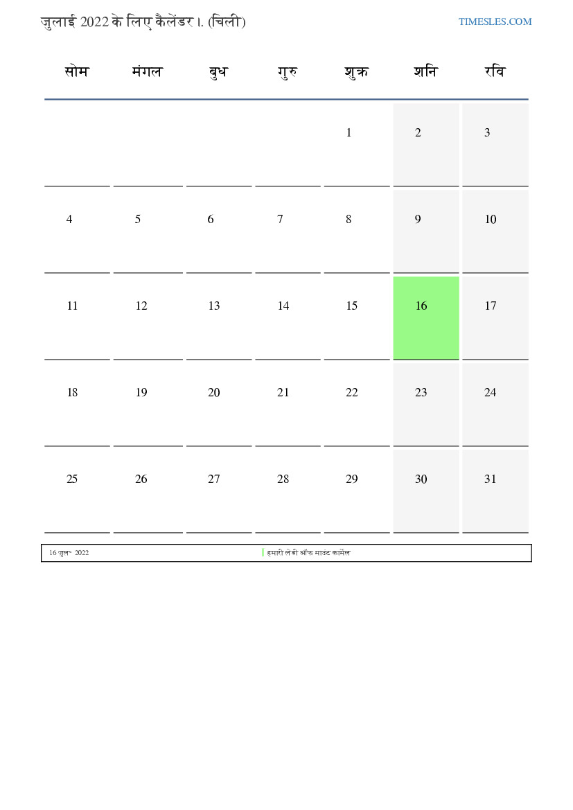 चिली के लिए जुलाई 2022 के लिए छुट्टियों और सप्ताहांत कैलेंडर
