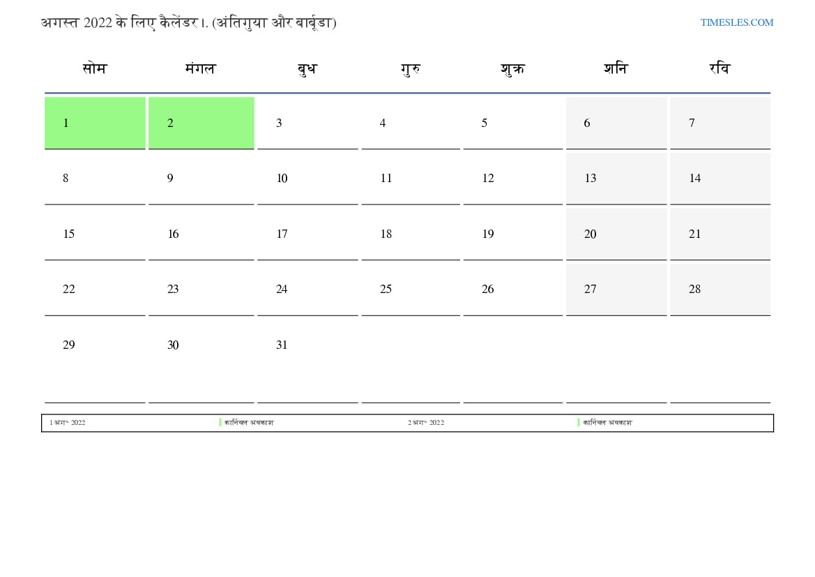एंटीगुआ और बारबुडा के लिए अगस्त 2022 के छुट्टियों और सप्ताहांत के साथ पीडीएफ कैलेंडर डाउनलोड और प्रिंट करें