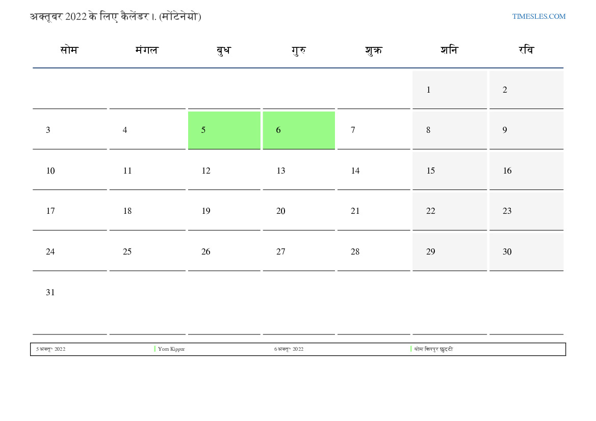 6 अक्तू॰ 2022 योम किपपुर छुट्टी