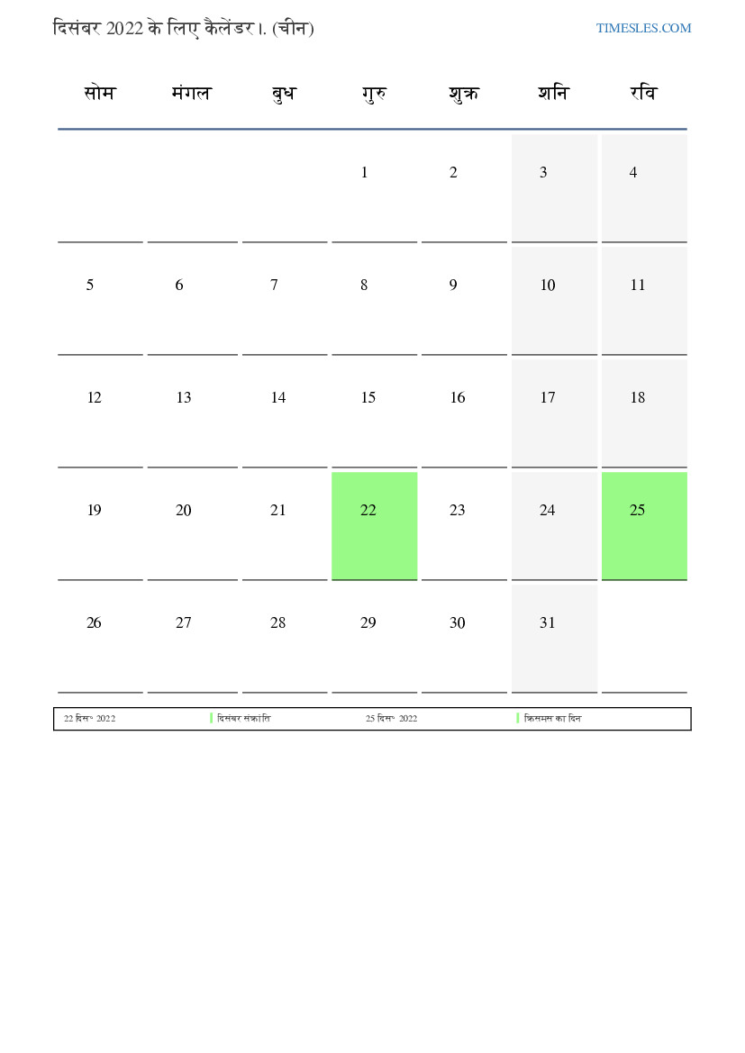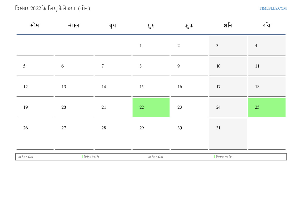 चीन के लिए दिसंबर 2022 के लिए छुट्टियों और सप्ताहांत कैलेंडर