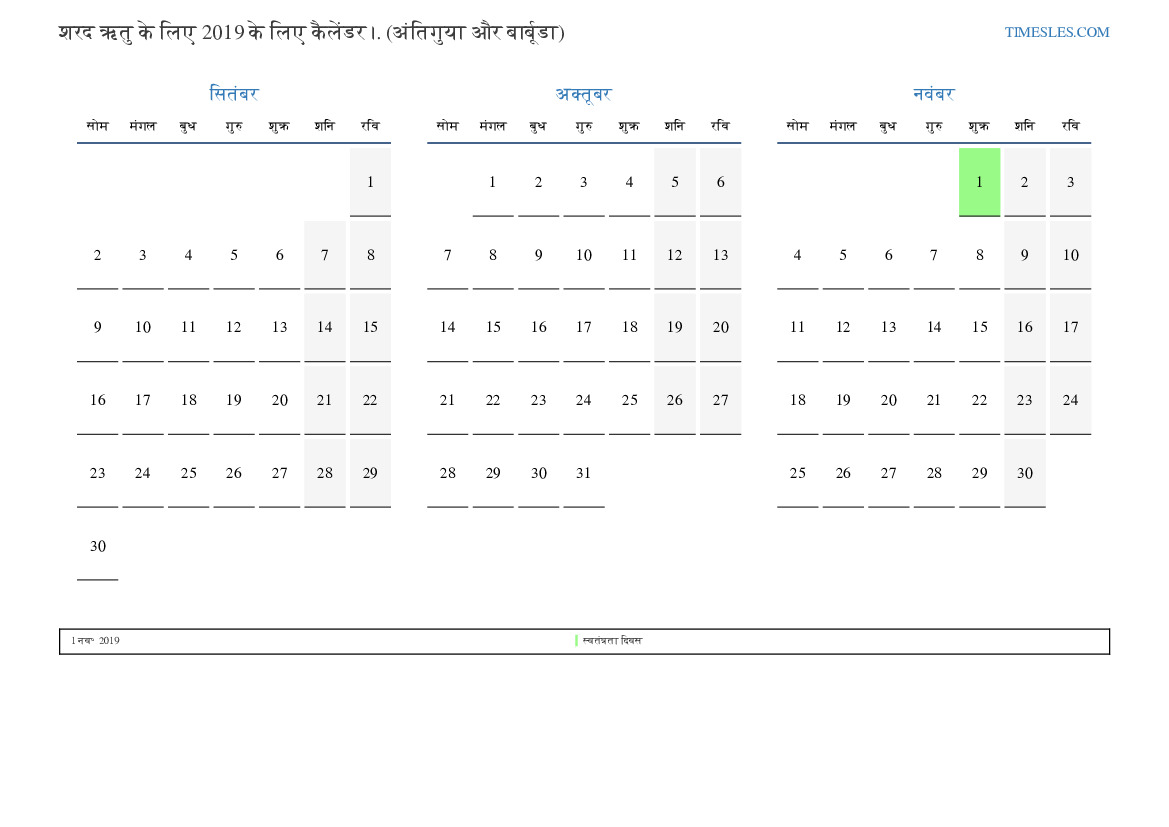 एंटीगुआ और बारबुडा के लिए 2019 की शरद ऋतु के लिए छुट्टियों और सप्ताहांत के साथ पीडीएफ कैलेंडर डाउनलोड और प्रिंट करें