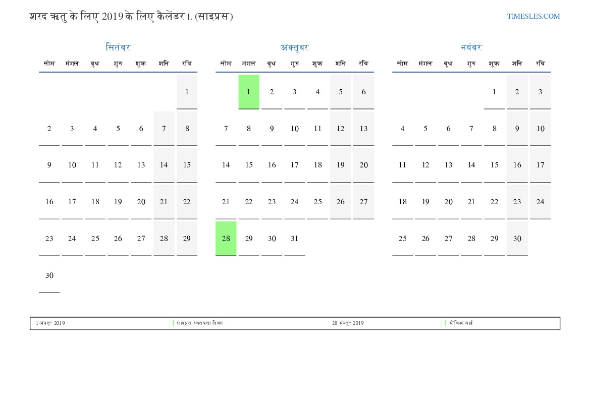 शरद ऋतु के लिए कैलेंडर 2019 साइप्रस के लिए