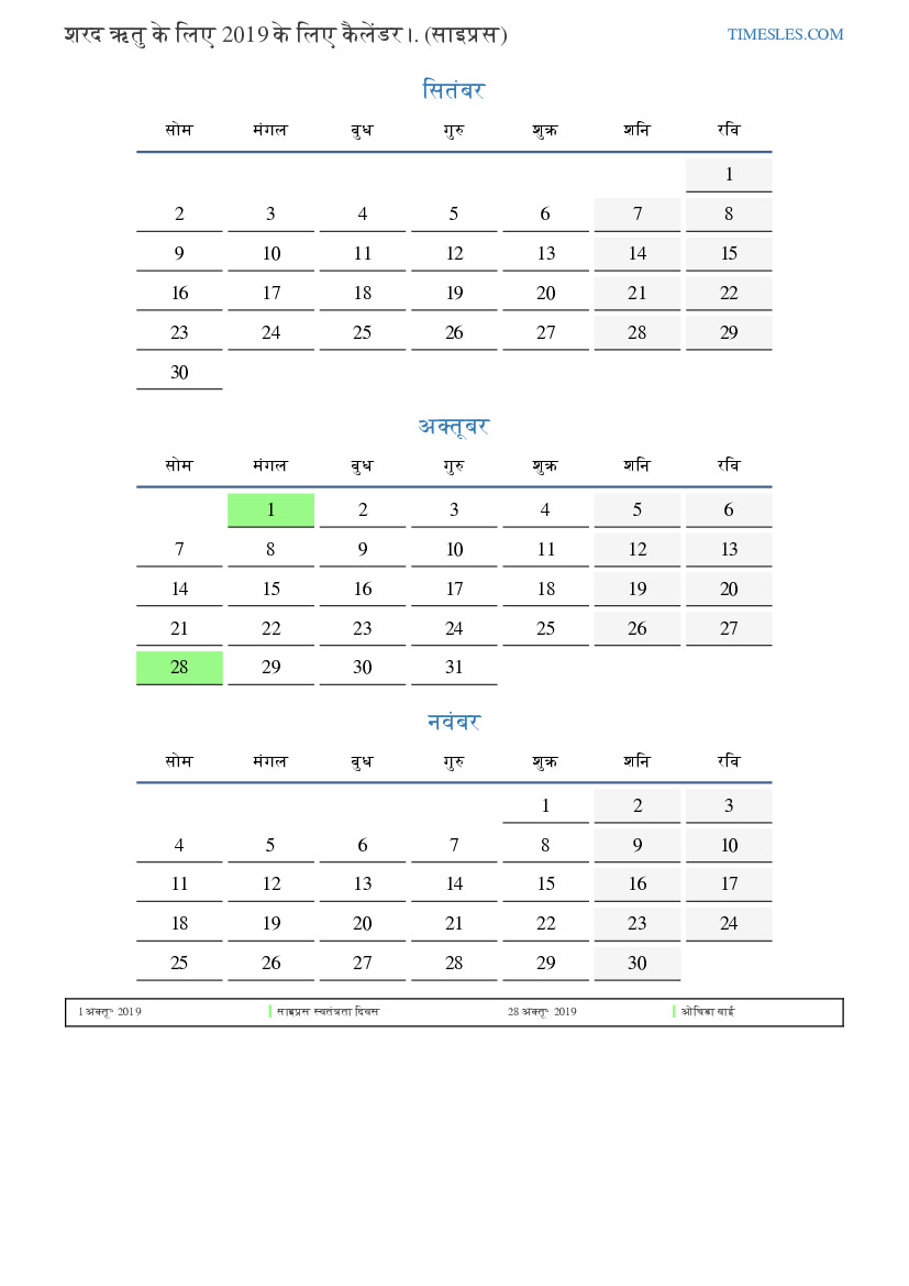 साइप्रस के लिए 2019 की शरद ऋतु के लिए छुट्टियों और सप्ताहांत के साथ पीडीएफ कैलेंडर डाउनलोड और प्रिंट करें