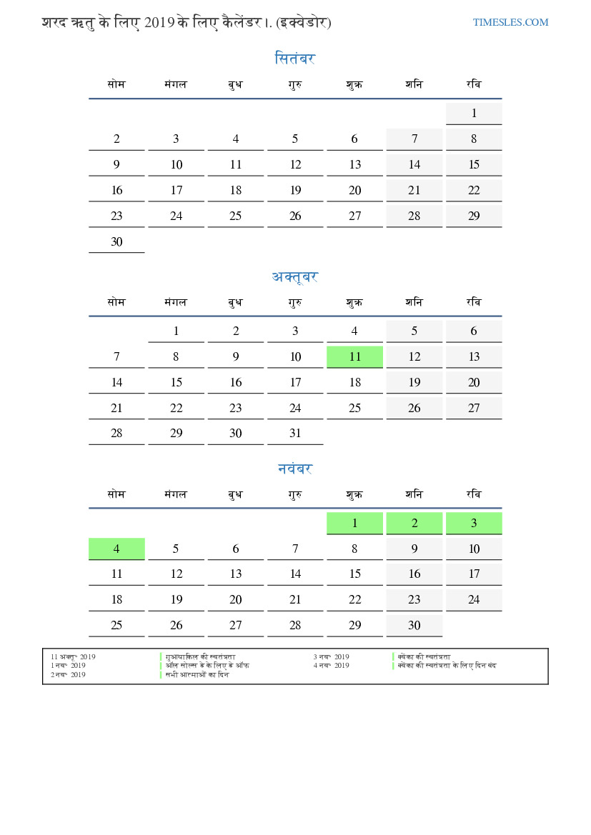 इक्वाडोर के लिए 2019 की शरद ऋतु के लिए छुट्टियों और सप्ताहांत के साथ पीडीएफ कैलेंडर डाउनलोड और प्रिंट करें
