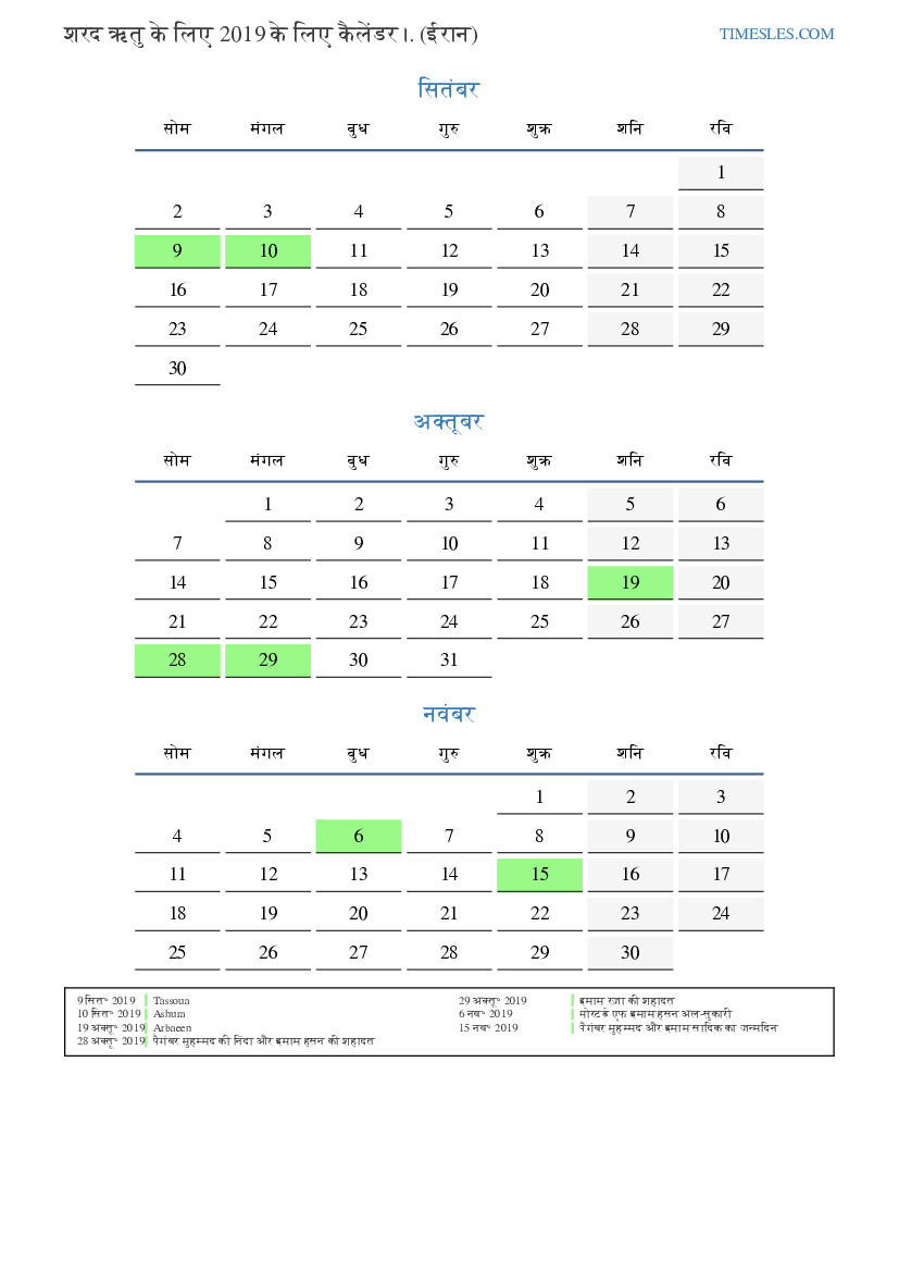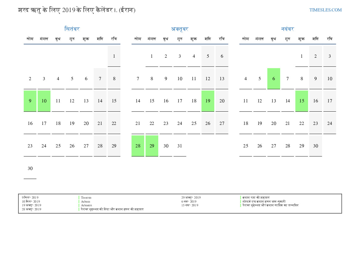 ईरान के लिए 2019 की शरद ऋतु के लिए छुट्टियों और सप्ताहांत के साथ पीडीएफ कैलेंडर डाउनलोड और प्रिंट करें