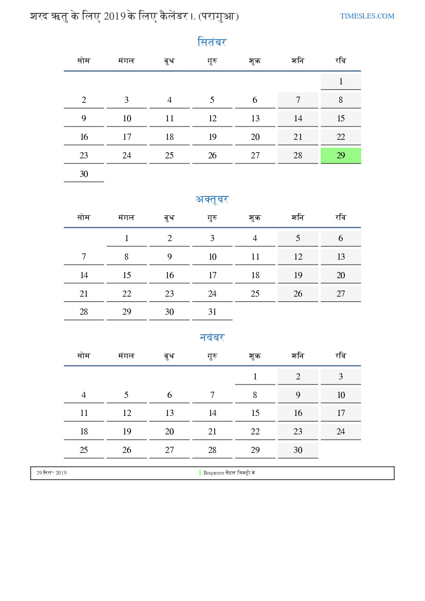 शरद ऋतु के लिए कैलेंडर 2019 पराग्वे के लिए