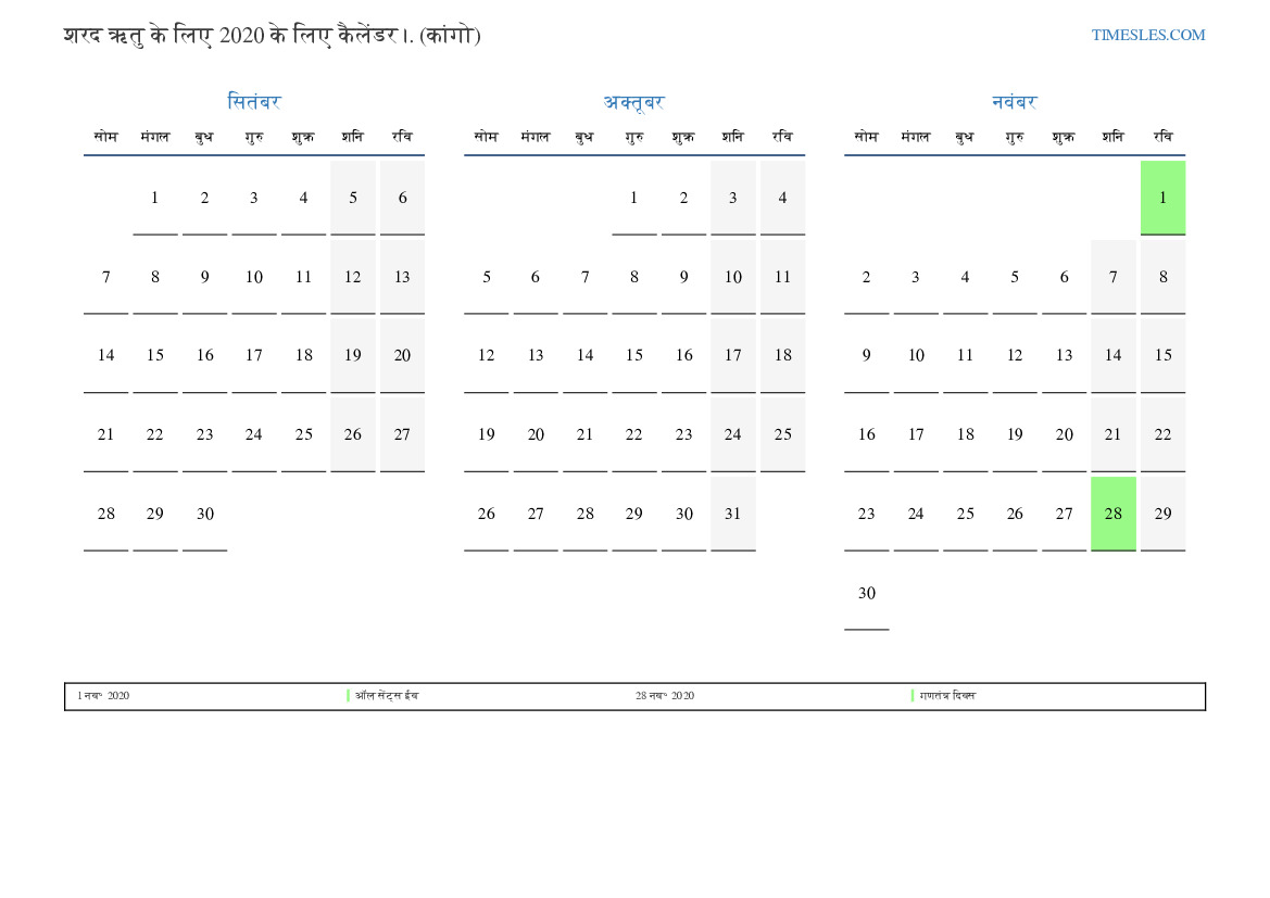 कांगो के लिए 2020 की शरद ऋतु के लिए छुट्टियों और सप्ताहांत के साथ पीडीएफ कैलेंडर डाउनलोड और प्रिंट करें