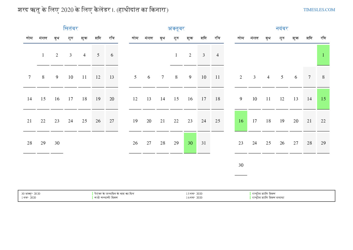 शरद ऋतु के लिए कैलेंडर 2020 कोटे डी आइवर के लिए